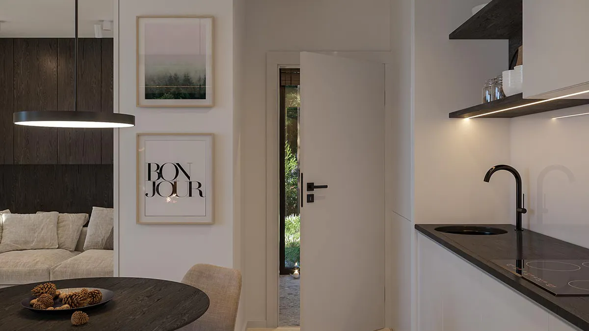Area (m²) 22.69 1. Living room + kitchen + dining room – 18.98 2. Bathroom – 3.71 3. Terrace – 32.74 4. Terrace – 16.80