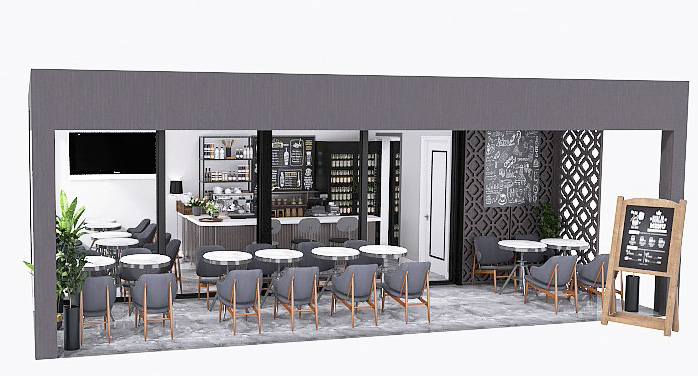 A ready-made business solution, a mini-cafe, delivered fully assembled to anywhere in Europe. The layout, size, and finishing can be customized according to the client’s wishes.