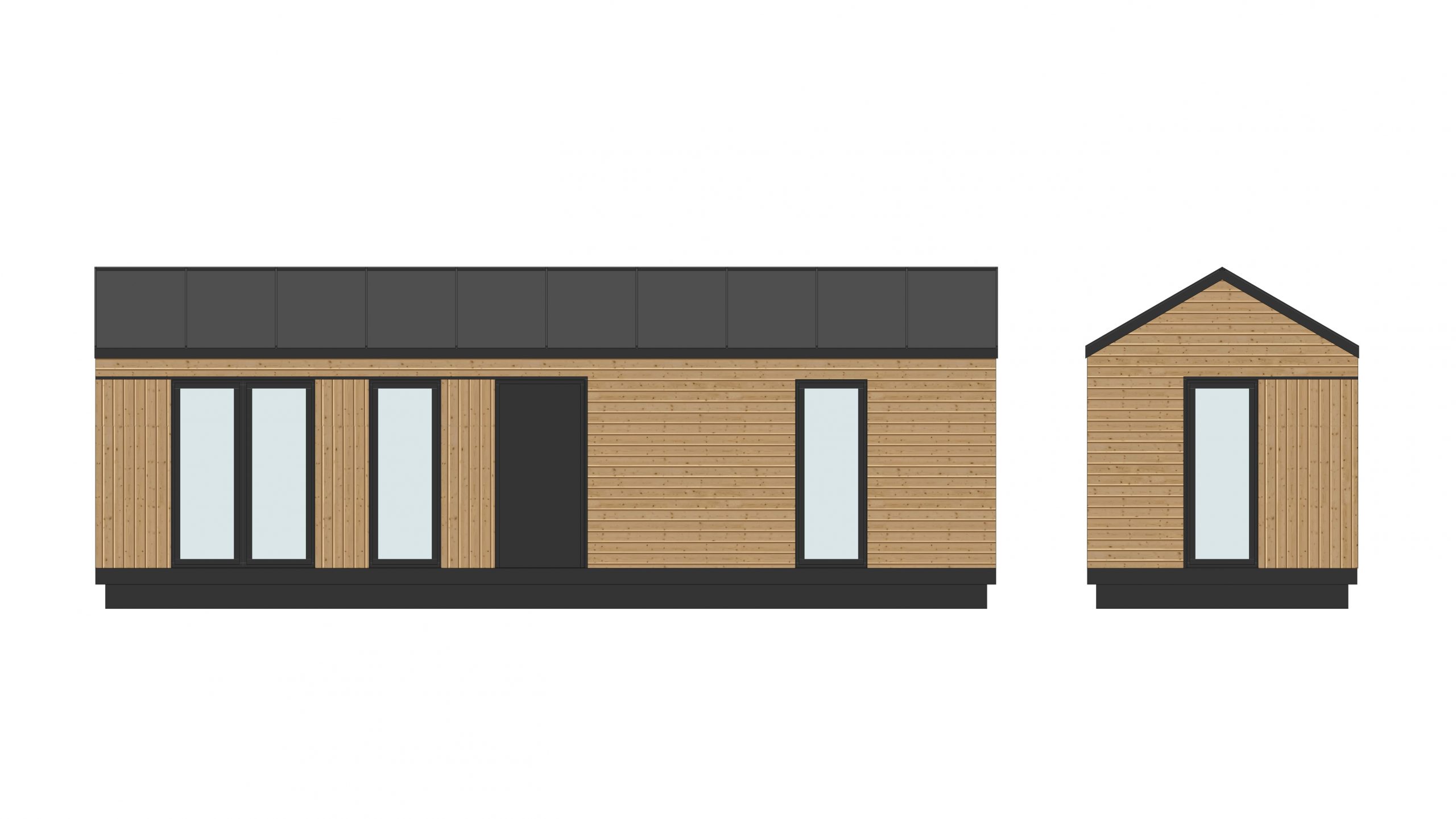 Exterior materials – Scandinavian spruce and anthracite standing seam metal.