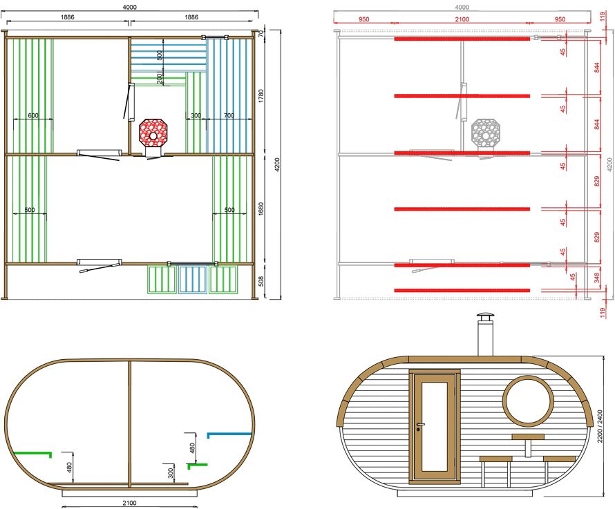 Upper benches for the sauna (178cm x 70cm + 118cm x 50cm)