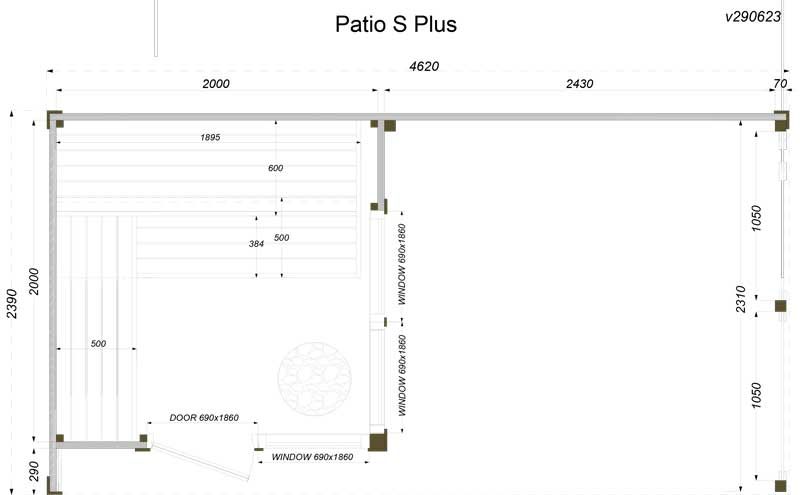 Gazebo = 243x231cm, a perfect place for a tub and garden relaxation area