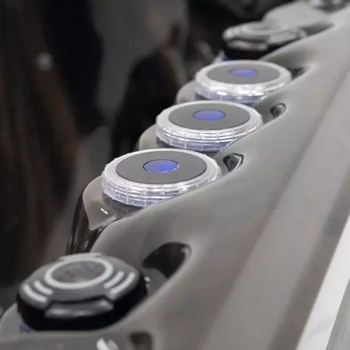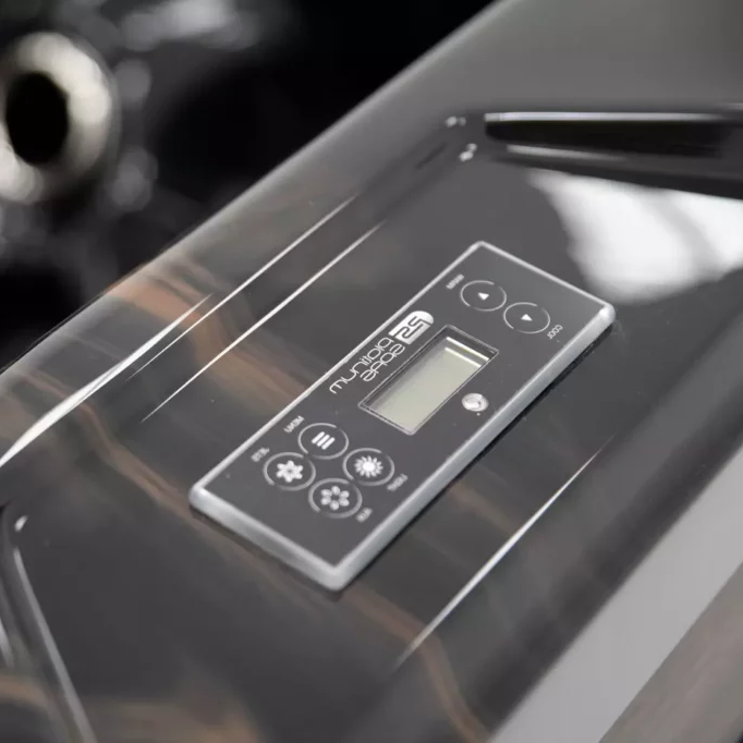 The luxurious Seville Whirlpool with gray exterior cladding accommodates up to 7 people and combines modern design with exceptional performance. It is available in three elegant shell colors: Sterling Silver, Midnight Canyon, and Odyssey. With a total of 48 massage jets arranged in thoughtful formations, it provides a relaxing and invigorating spa experience.Thanks to the ozone water purifier, the water stays clean at all times, while the two powerful 2-HP LX pumps ensure a consistent and intensive massage. A 3-kW heater keeps the water comfortably warm, and the high-quality Aristech acrylic construction, from one of the world’s leading manufacturers, guarantees durability and exclusive quality.