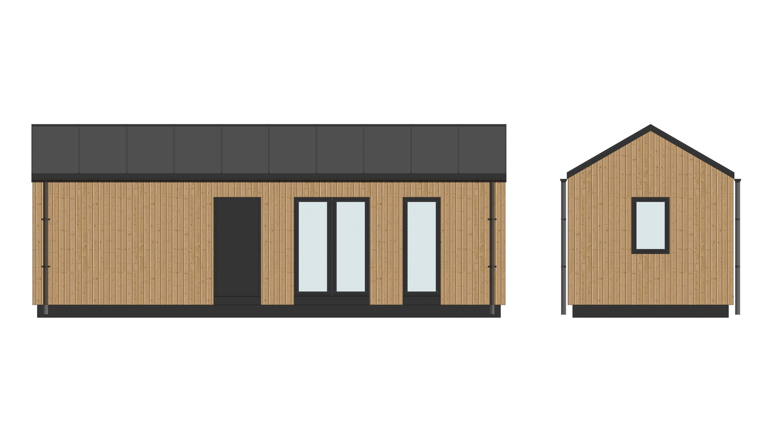 Exterior materials – Scandinavian spruce and anthracite standing seam metal.