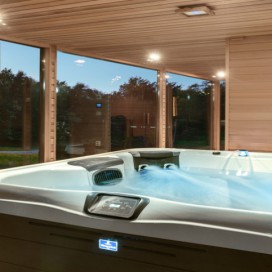 Sauna, jacuzzi, shower, and relaxation area all in one house